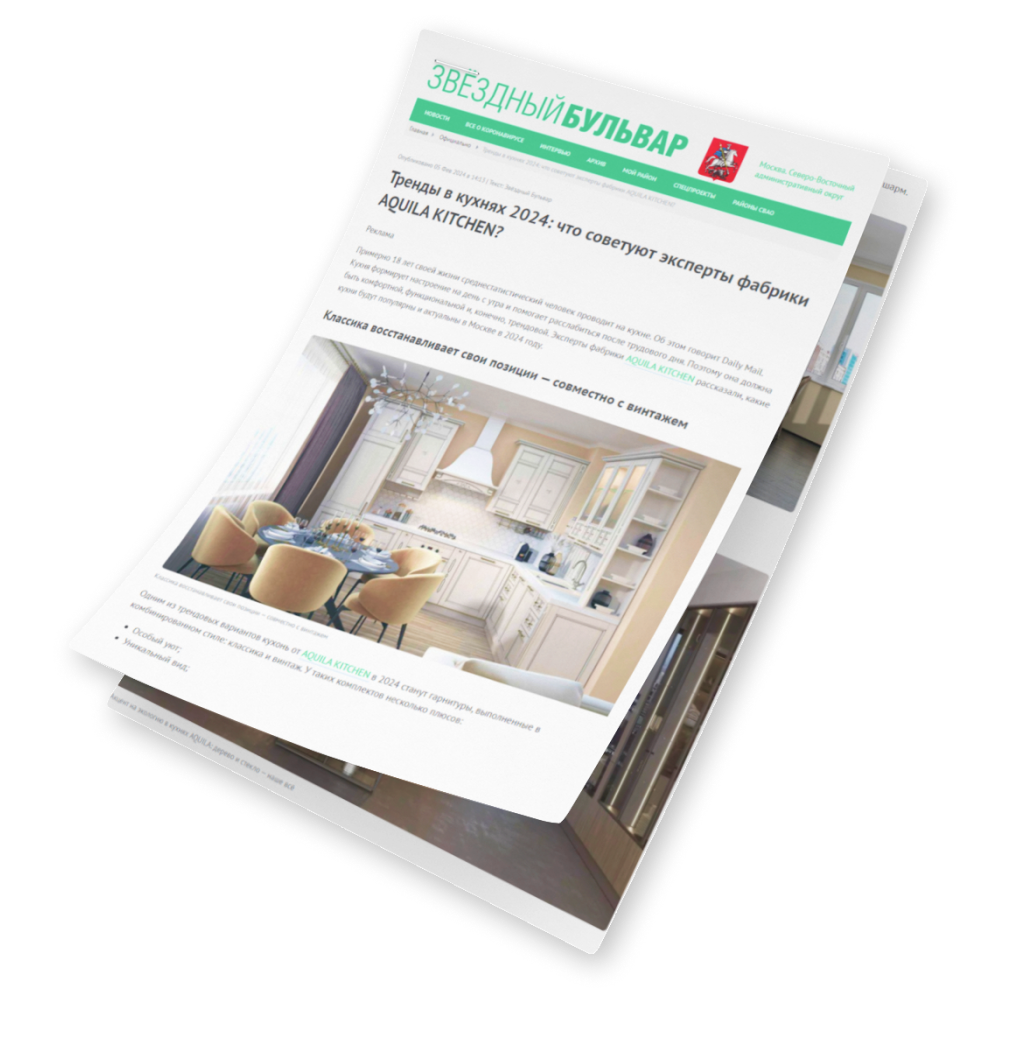 Примерно 18 лет своей жизни среднестатистический человек проводит на кухне. Об этом говорит Daily Mail. Кухня формирует настроение на день с утра и помогает расслабиться после трудового дня. Поэтому она должна быть комфортной, функциональной и, конечно, трендовой. Эксперты фабрики AQUILA KITCHEN рассказали, какие кухни будут популярны и актуальны в Москве в 2024 году.